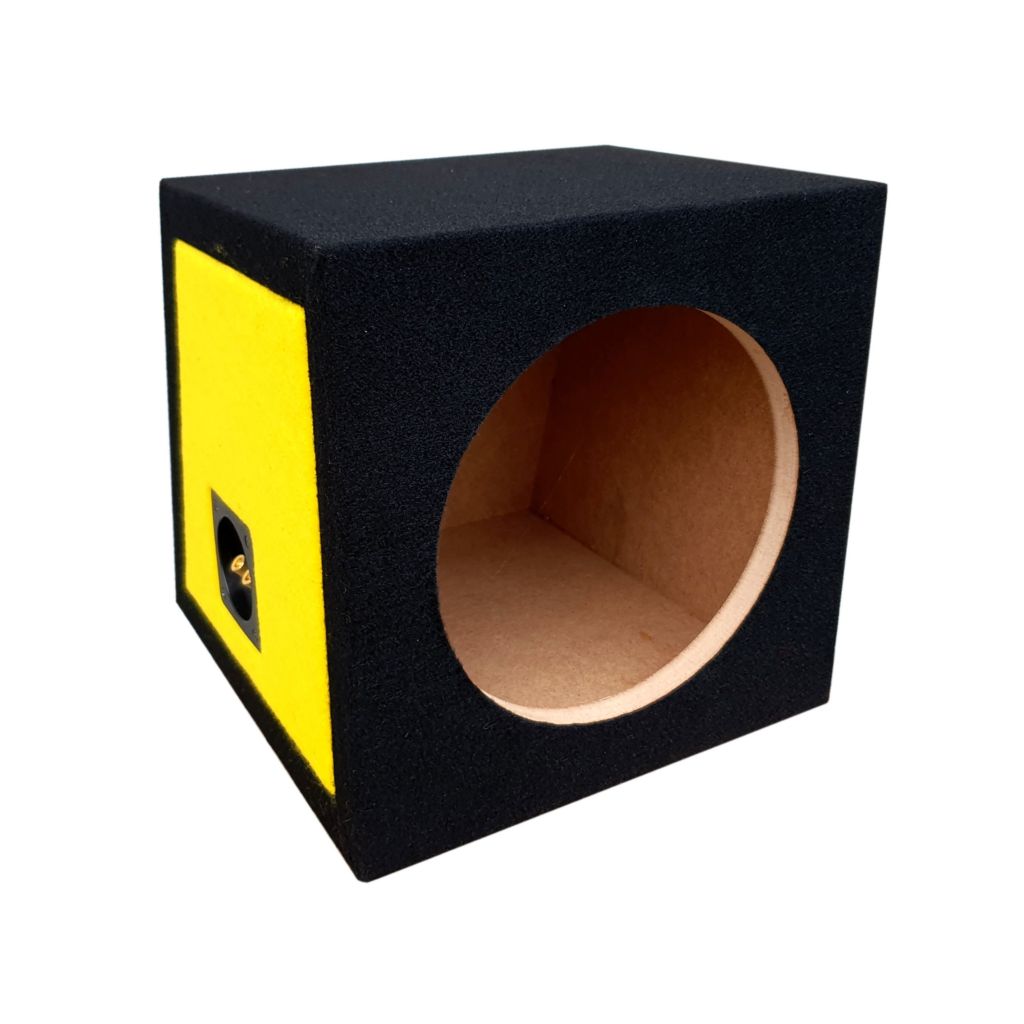 Obudowa zamknięta subwoofera samochodowego dla głośnika niskotonowego o średnicy 25 cm / 10 cali. Materiał - płyta MDF 18 mm. Objętość - 22 litry. Obicie kolor: Czarny - żółte boki