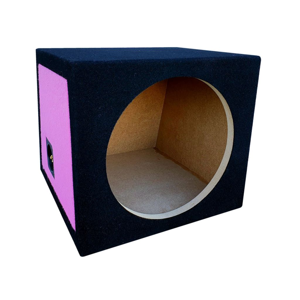 Obudowa zamknięta subwoofera samochodowego dla głośnika niskotonowego o średnicy 30 cm / 12 cali. Materiał - płyta MDF 18 mm. Objętość - 33 litry. Obicie kolor: Czarny - różowe boki