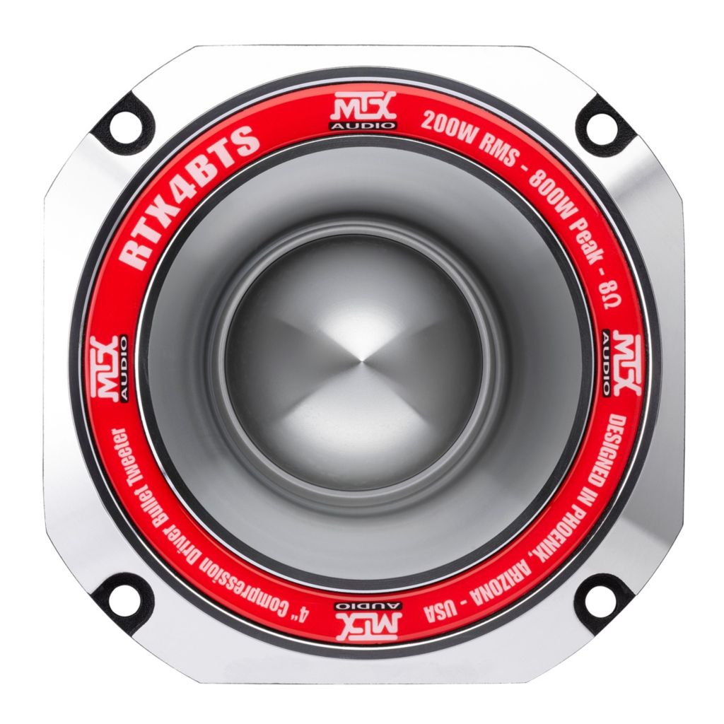 MTX Audio RTX4BTs to wysokoskuteczny tweeter kompresyjny typu bullet, stworzony z myślą o systemach o bardzo dużej głośności. Już przy niewielkiej mocy generuje potężny, dynamiczny i „żywy” dźwięk, idealny do instalacji SQL (Sound Quality Loud) oraz systemów open door.